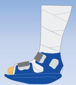 Czy but Hobble-Free pasuje na każdy rodzaj gipsu? Tak. Zastosowanie przedłużonych pasków na rzepy oraz otwarta konstrukcja cholewki pozwalają na osadzenie w nim zarówno tradycyjnego, ciężkiego gipsu, jak i lżejszych opatrunków syntetycznych (tzw. lekkiego gipsu).