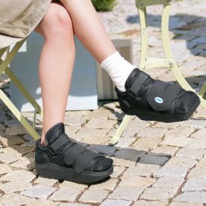 Najpierw trzeba dobrze opanować chodzenie, gdyż jest ono bardziej specyficzne niż w płaskim obuwiu pooperacyjnym. W szczególnych przypadkach zalecamy użycie własnie tego buta z wkładką odciążająca Puzzle Insole lub Peg Assist System, ze względu na dużo prostsze utrzymanie równowagi w obuwiu bez podwyższenia.