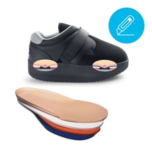 Wkładka odciążająca (4 warstwy): Każdy but wyposażono w wyjmowaną wkładkę bazującą na różnych gęstościach pianki (Plastazote i EVA). Umożliwia ona na precyzyjne wycięcie materiału dokładnie w miejscu występowania owrzodzenia, błyskawicznie przenosząc ucisk na zdrowe obszary podeszwowe.